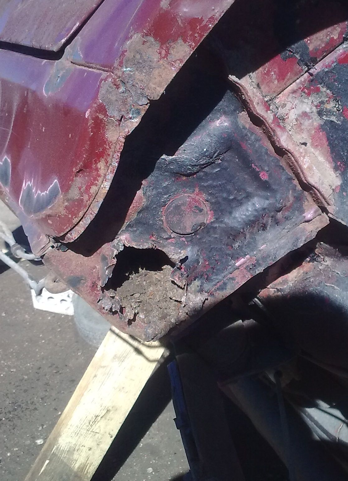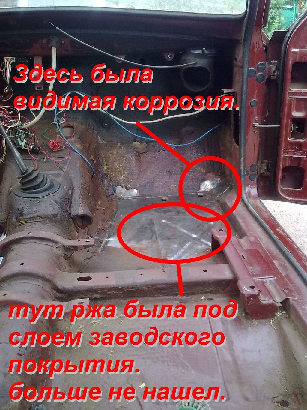 Покатался несколько дней, разбирать начал с салона. Сохранность пола на 5 с маленьким минусом, в районе где пол переходит в моторный щит около порога, в самом углу, немного ржавчины. Начал ковырять заводское покрытие хрен отдерешь решил его оставить, где отодралась есть немного коррозии зачистил надо грунтовать. Еще разобрал морду в принципе ничего крименального, но в местах где крепеж, и в местах соединения панелей ржавчина. Сейчас жду денег для начала работ по жестянке и покраски.