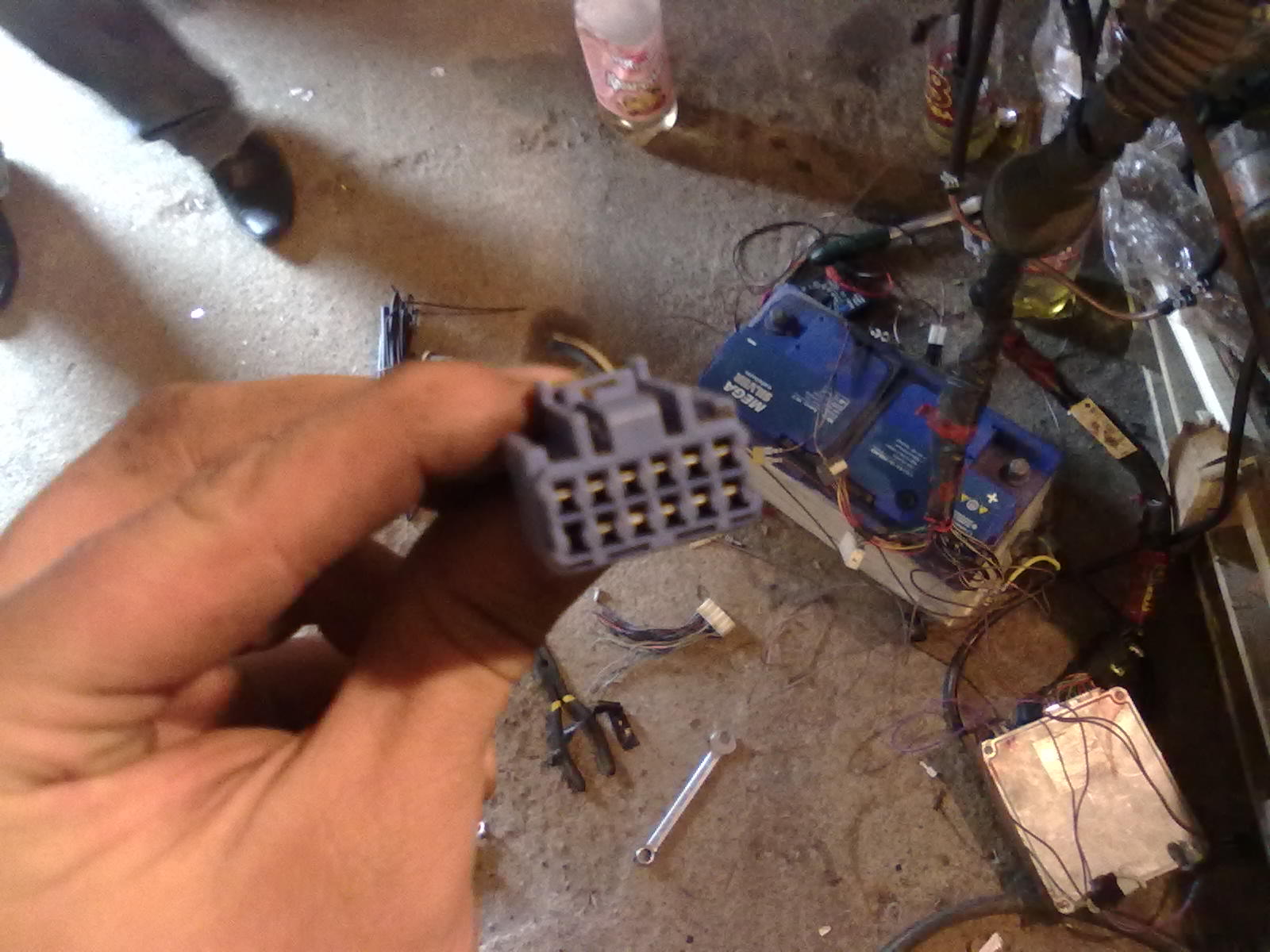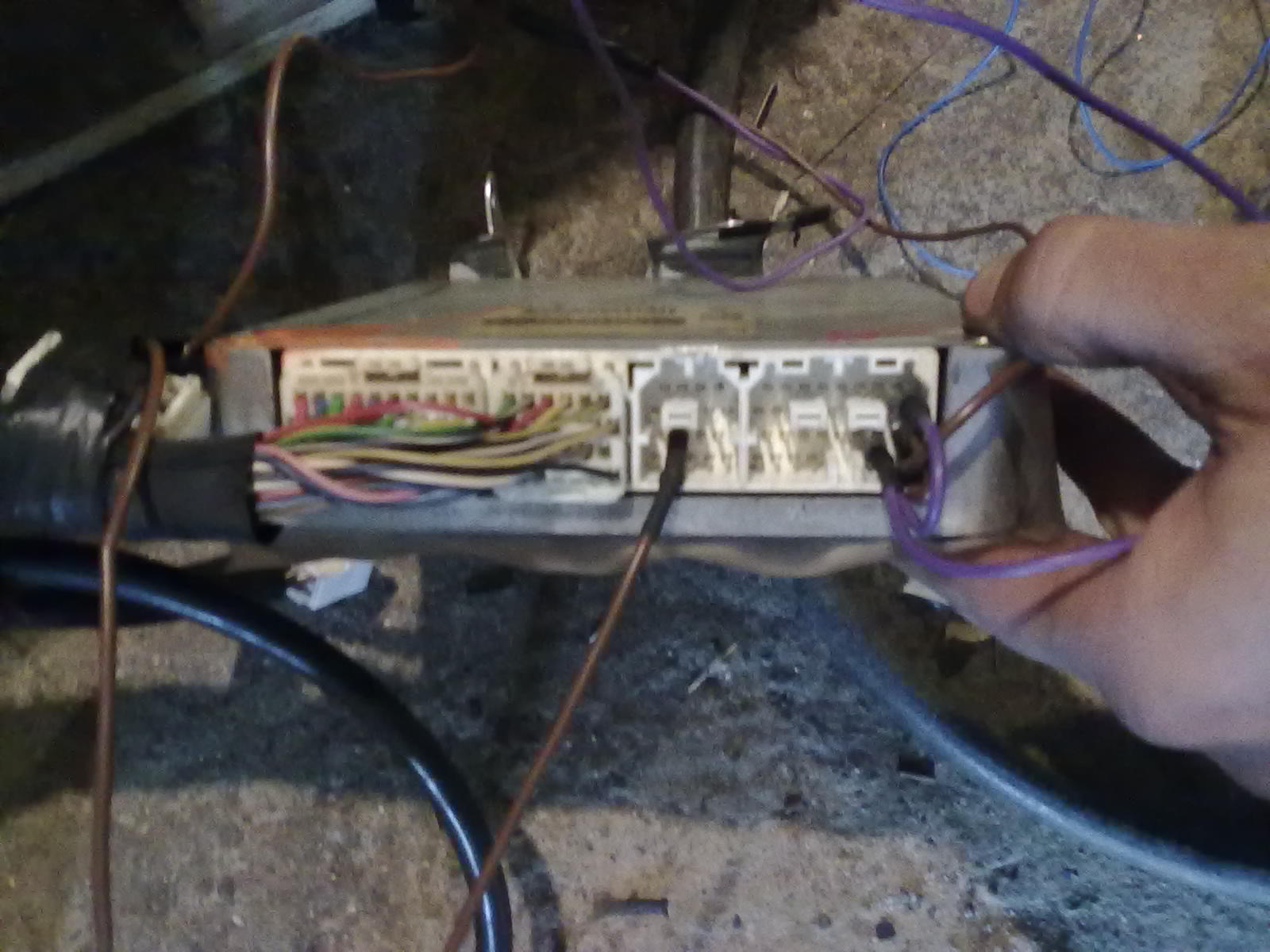 3) Чтобы не спалить дорогу в мозгах подключаем минусовой выход реле бензонасоса на один контакт левой колодки и подаем питание на 2 контакта в правой колодке (у меня там правда запилен еще провод на 2 контакта, который тупо висит в воздухе - это выход на главное реле, чтобы просто завести не нужен + для фото Я воткнул их на отъебись - перепутал чуток. Если кому внезапно будет надо - ищем на распиновке ЭБУ клеммы BATT и IGSW. Это они.).