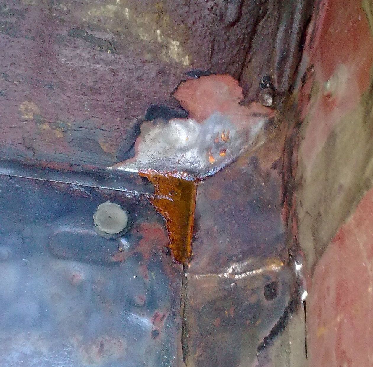 Покатался несколько дней, разбирать начал с салона. Сохранность пола на 5 с маленьким минусом, в районе где пол переходит в моторный щит около порога, в самом углу, немного ржавчины. Начал ковырять заводское покрытие хрен отдерешь решил его оставить, где отодралась есть немного коррозии зачистил надо грунтовать. Еще разобрал морду в принципе ничего крименального, но в местах где крепеж, и в местах соединения панелей ржавчина. Сейчас жду денег для начала работ по жестянке и покраски.