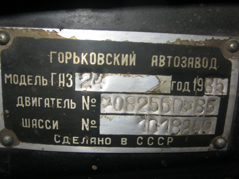 - Автомобиль: ГАЗ 24М 402дв. 1985г.