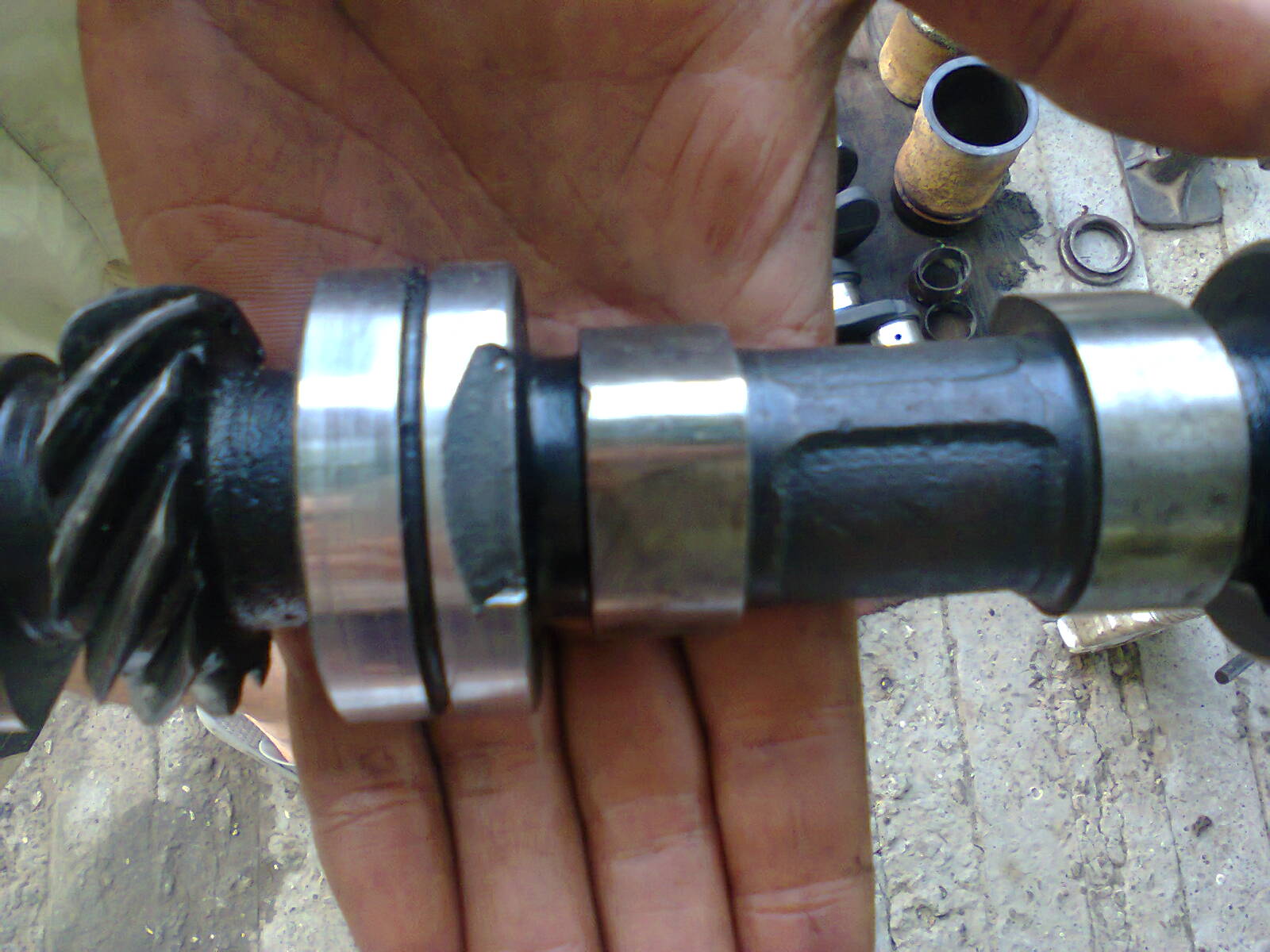 Картер двигателя, кожух и голова отмыты на автомойке до блеска. Распредвалл и текстолитовую шестерню (новую) ГРМ взял у знакомого старика за бутылку виски. Новая гильзо-поршневая ПОН Кострома. Коренные шейки коленвала пришлось шлифовать с 0,5 до 1,25 чтобы выйти в размер и убрать биения на шейках. Шатунные с 0,25 на 0,5. Нарезана маслосгонная резьба. Мерседесовская сальниковая набивка.