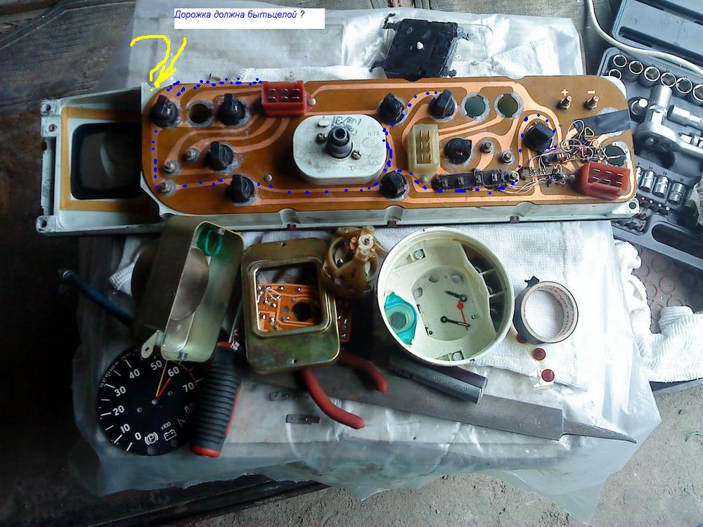 Да вродеж не раз обсуждали, что без прикрученной к панели оплетки тросика регулировки часов, кроме ампермЕтра и спидомЕтра нифига не работает...Эксцентрик писал(а):мануал так и не почитал. можете тапком кинуть, но по-моему мнению минусовые дорожки подходят к часам, а там через регулятор стрелок на торпеду.