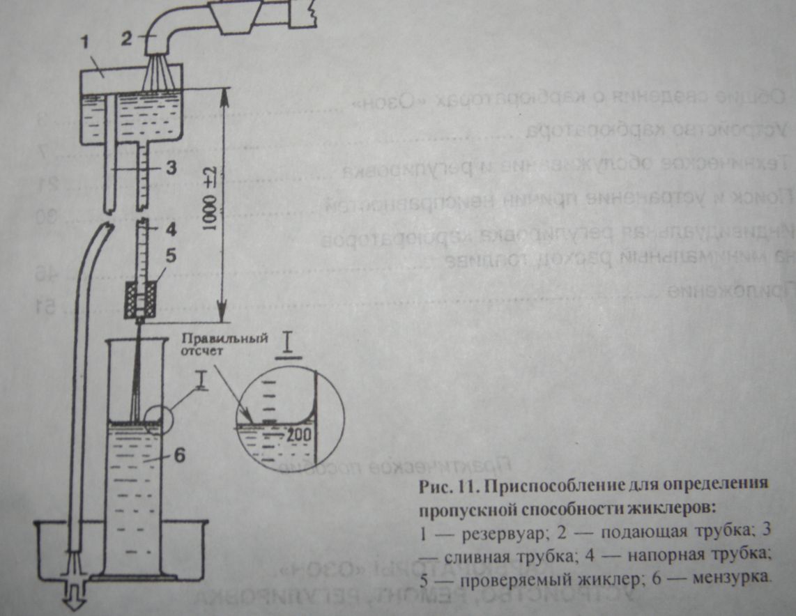 Карбюраторы ОЗОН, устройство, ремонт, регулировка писал(а):Пропускная способность жиклера выражается количеством воды, вытекшей через его калиброванное отверстие в течение одной минуты. Поэтому для определения пропускной способности жиклера достаточно подставить мензурку под струю воды и ровно через 60 секунд убрать ее, деление шкалы мензурки, напротив которого установится мениск воды, будет соответствовать пропускной способности жиклера в сантиметрах в минуту. При этом нужно следить за тем, чтобы направление проливки жиклера водой соответствовало направлению прохождения через него бензина или воздуха в карбюраторе.