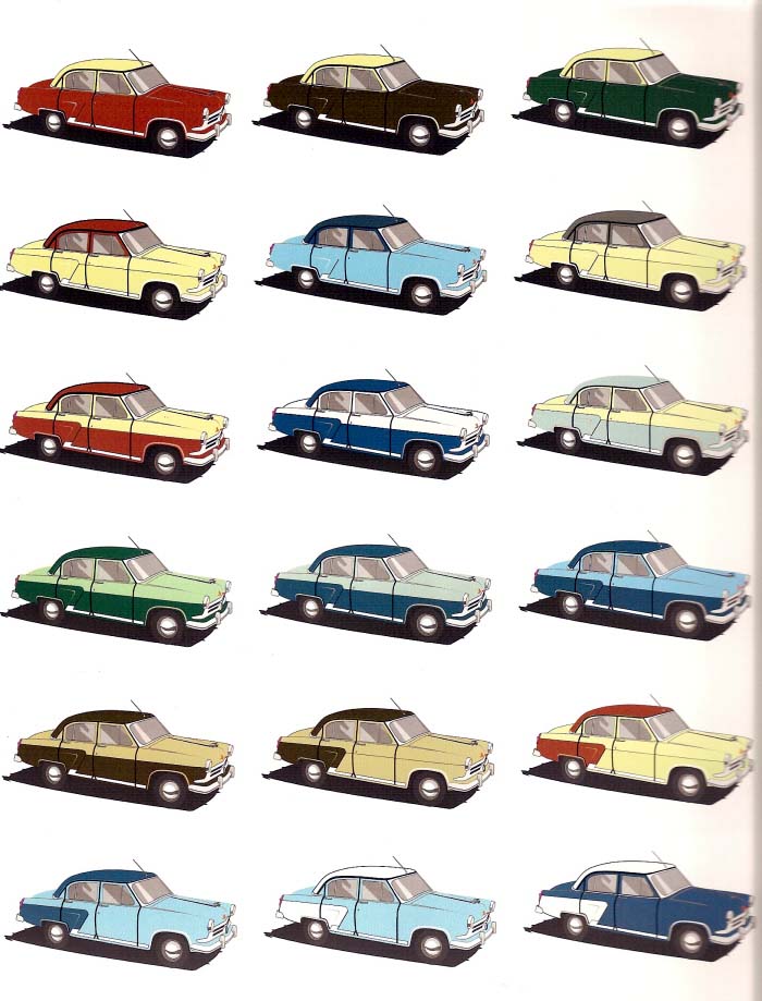 Выскажу своё мнение: классический вид 60х это один цвет, двухцветные это 50е. Это говорит не только наш опыт советский, но и американский. Достаточно посмотреть фото машина 60х. Единственное какой был вариант покраски в 2 цвета это покраска крыши, обычно в чёрный или белый.