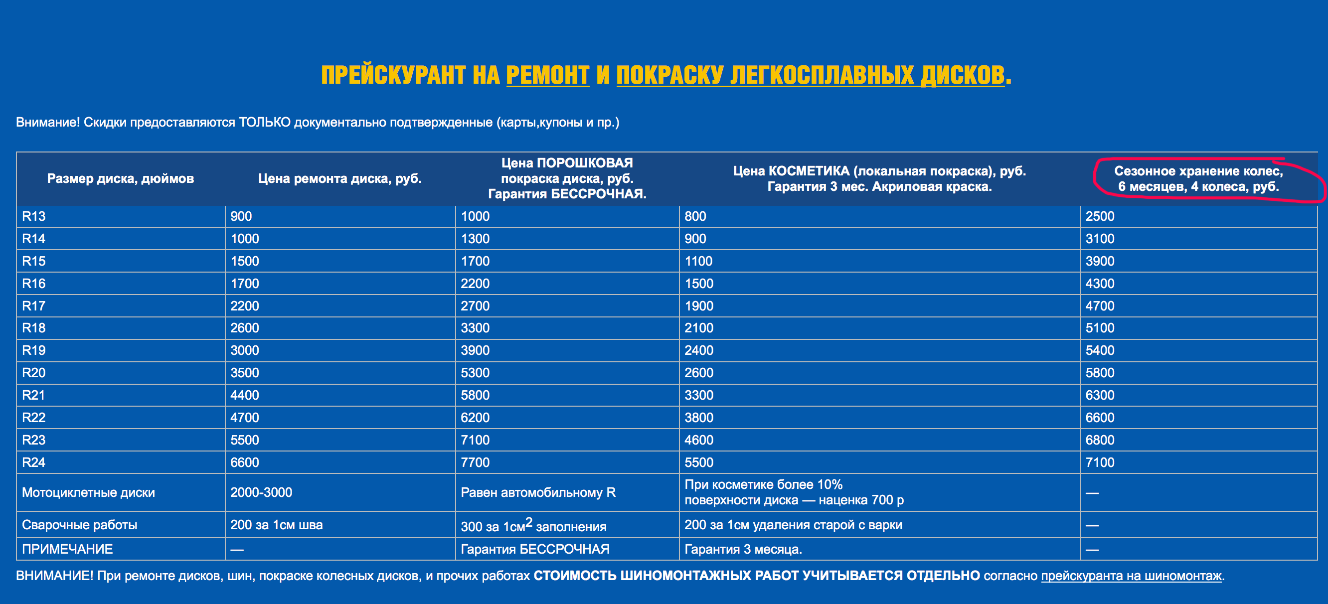 Шиномонтажные и прочие работы оплачиваются отдельно