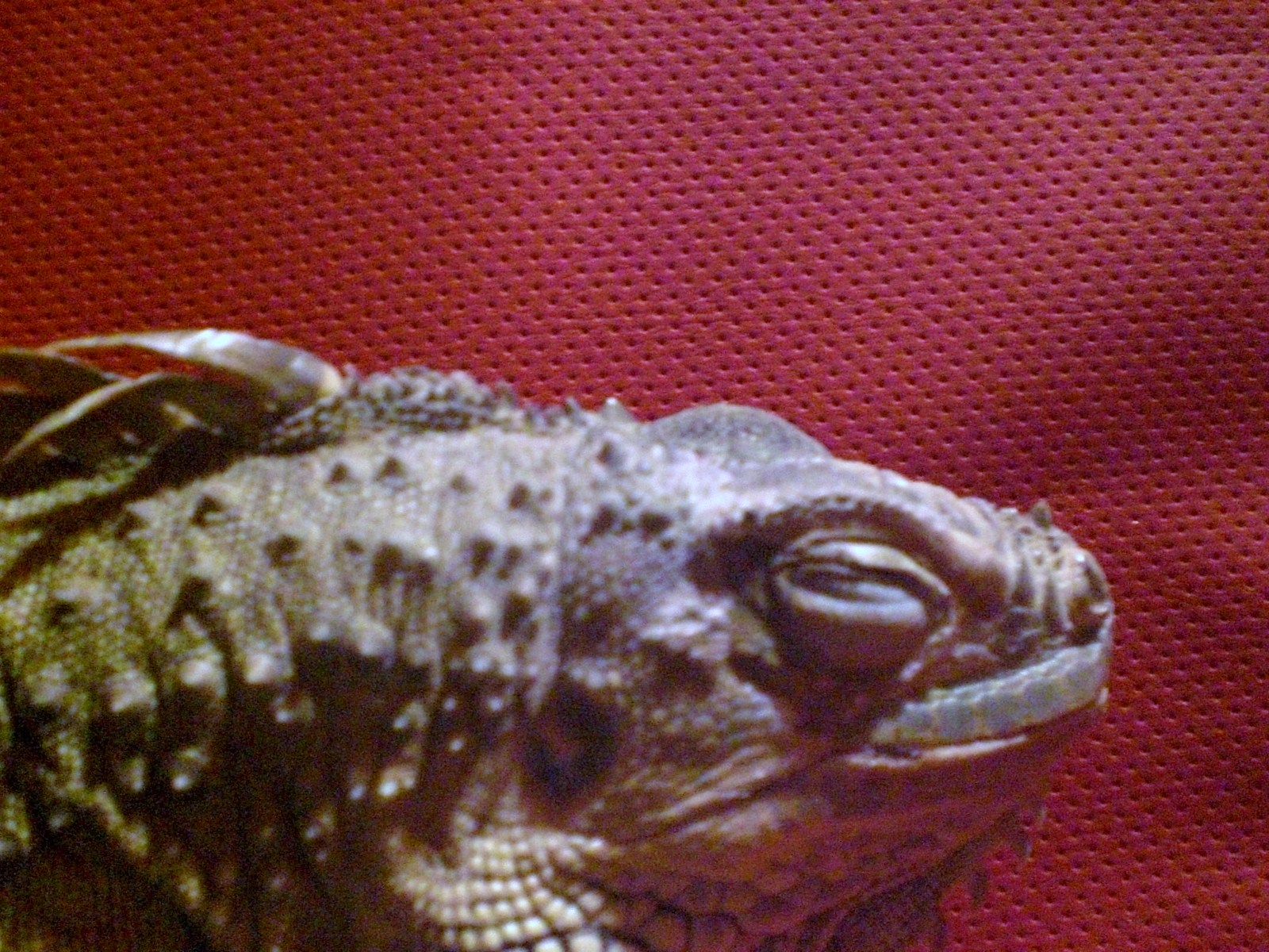 Был куплен качественный кожзам красного цвета с перфорацией: