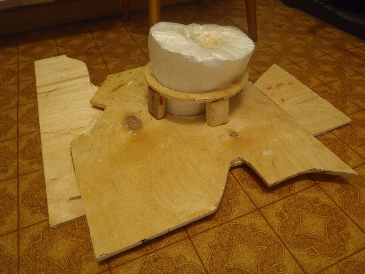 Я хочу без подиумов обойтись, чтобы ногам не мешало. Просто кусок сантиметровой фанеры, обтянутый поролоном и кожзамом. Потому и буду углублять выштамповку