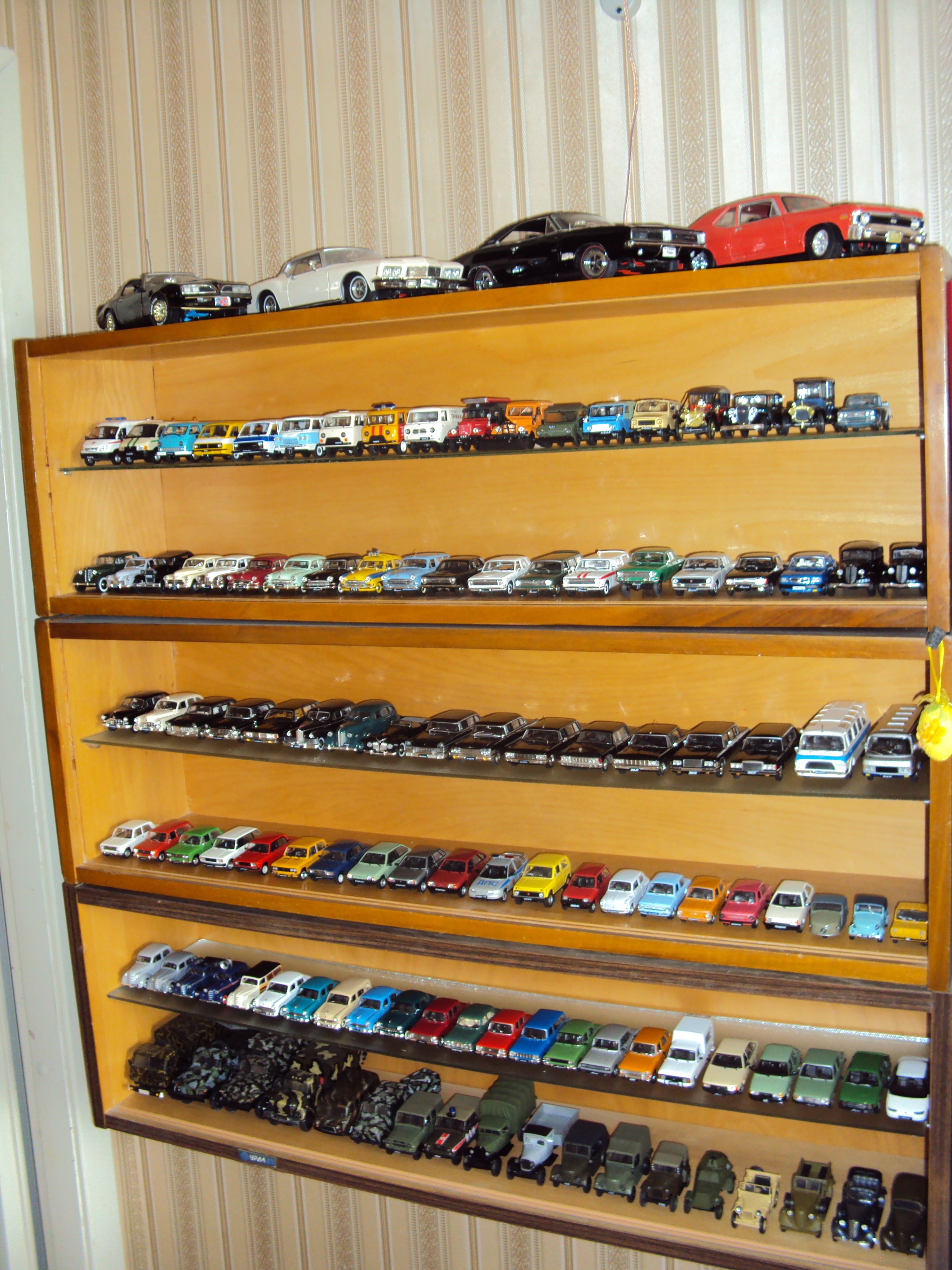 Сделал свет в, выделенной мне женой, полочке. Расставил туда все имеющиеся авто (коллекция будет расти, это то что сумел сохранить и отреставрировать):
