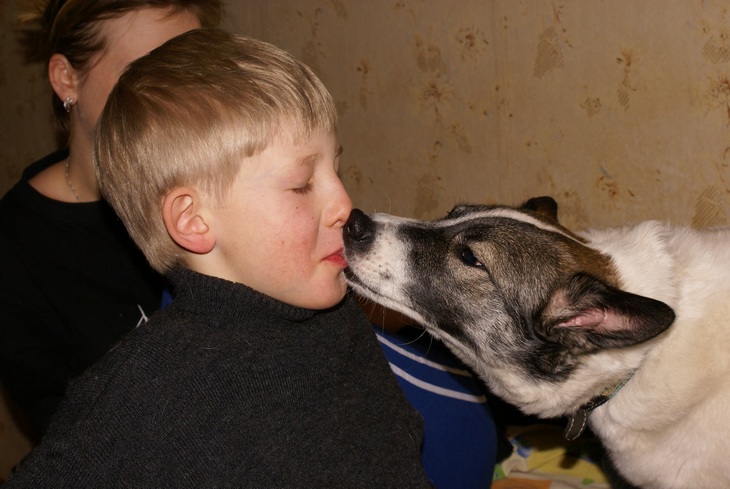 ну еще пара фото с Тиной,ее щенками(папа хаски чистокровный),моим сыном Димой и Масиком