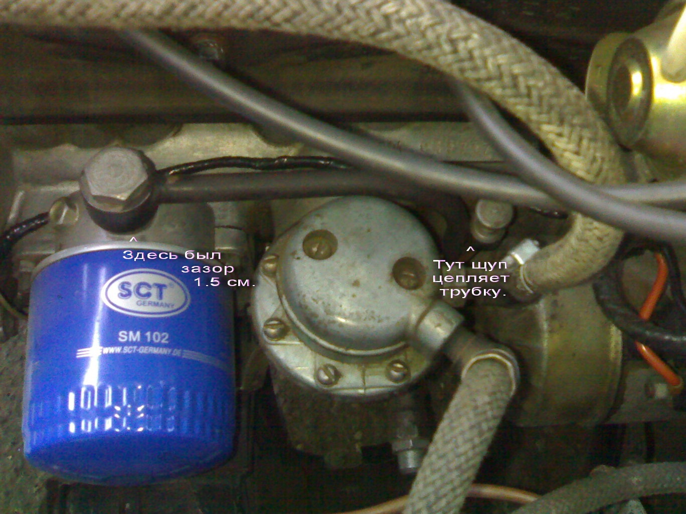 Трубку легко можно отогнуть на 1-2 мм. цеплять не будет. Датчик ставится вместо заглушки либо той, что на фото вверху, либо той, что невидна под фильтром.