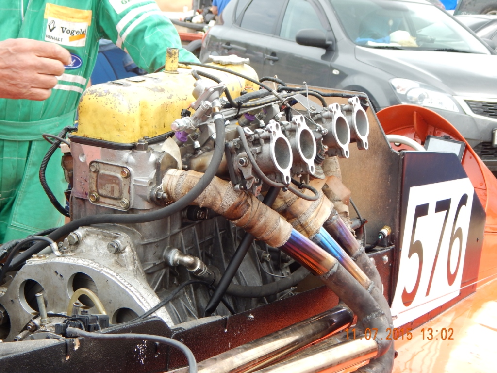 В прошлом году выкладывал фото 402-го на гоночном глиссере. Вот свежее. Схема та-же, но двигатель другой. только крышка клапанов старая. Вместо веберов четырёхдроссельный впрыск от Тоёты. Ещё интересный момент это медная прокладка под головку. Вырезана на гидроабразивной резке, потом обожжена для мягкости. Но что-то как-то не идёт. Тоесть дома едет лучше чем прошлогодний, а прошлогодний объезжал чемпиона России, Но вот на двух этапах чемпионата России просто отказался ехать. Причём на тренировке ехал.