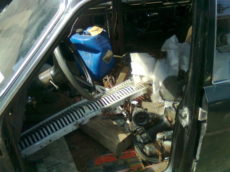 Перед поездкой снял гараж на месяц, отогнал машинку от дождя и разграбления. Надо её доварить (багажник остался), до собирать по железу (передок) и на перекраску. У другого человека.