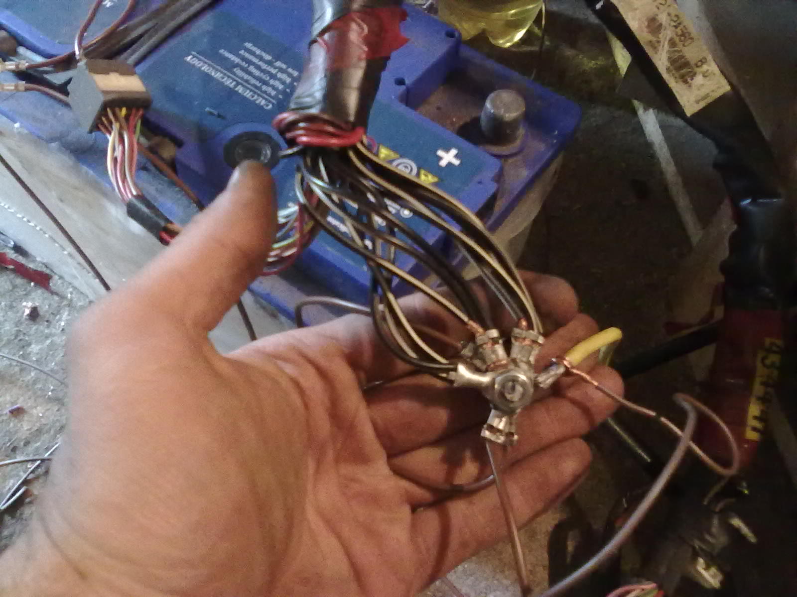 4) Прикручиваем кнопку стартера, кнопку "замок зажигания", 2 релюхи , о которых Я уже говорил, кидаем это всё на аккум, щёлкаем "замком", нажимаем кнопочку "старт" и ...