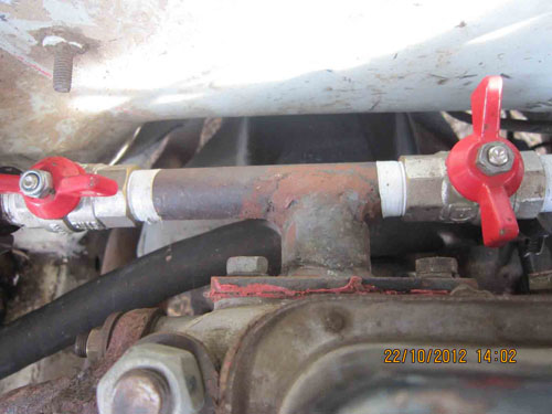 У-образную делать места нету, поэтому было решено, что пусть будет Т – образная. Резьба, водопроводные краны полдюймовые, все сурово и надежно. Шланг печной ветки использован 20-й, чтобы налезал на 15 трубу. Теперь тосол из задней части головы идет через печку в малый круг, либо минуя печку, в малый круг. Либо по двум веткам в малый круг. :) С двумя кранами не очень удобно, но мне пофиг ) В таком виде проехано уже тысяч 5 или 6, нигде не течет вроде :). Да, печной штуцер из помпы взялся выворачивать, когда мотор собрал и внедрил в машину. А он не выворачивается. Забил, и заглушил куском шланга с болтом.