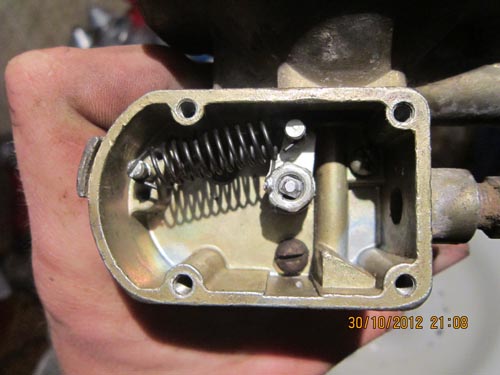 Едем дальше. Каковошеньки иметь такую дроссельную заслонку? :) Видно, что из пупка торчит нечто. Это пружина, которая держит дроссель открытым.