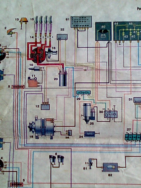 Вот для наглядности часть схемы ГАЗ-2410. Под номером 40 здесь находится амперметр, с левой клеммы которого идёт три провода: один на силовую клемму стартера - отсюда идёт основная запитка цепи, другой, чёрный. запитывает втягивающее реле стартера, а третий идёт на блок предохранителей и далее - прикуриватель, сигналы и часы.