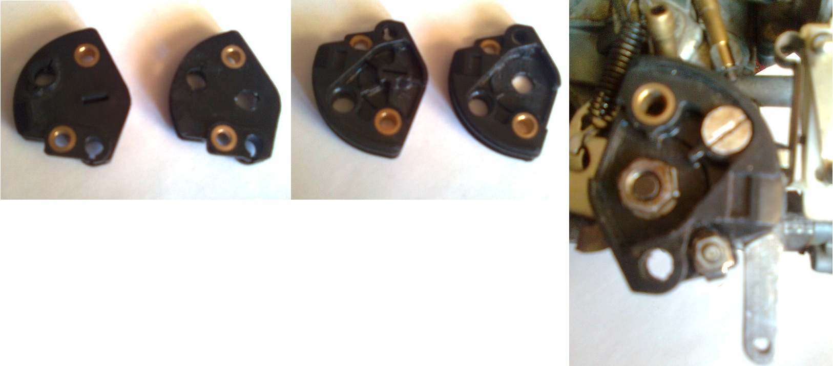 Сектор тросового привода от ДААЗ-2108 Солекс, легко дорабатывается долотом. Все понятно из фотографий. Центральное отверстие Ø7мм. Сектор тросового привода на рычаге привода ДЗ1к закрепляется фигурным винтом М4 через шайбу-гровер. Трос привода на секторе крепится зажимом и винтом М3 с гайкой. На фото доработанный сектор справа.