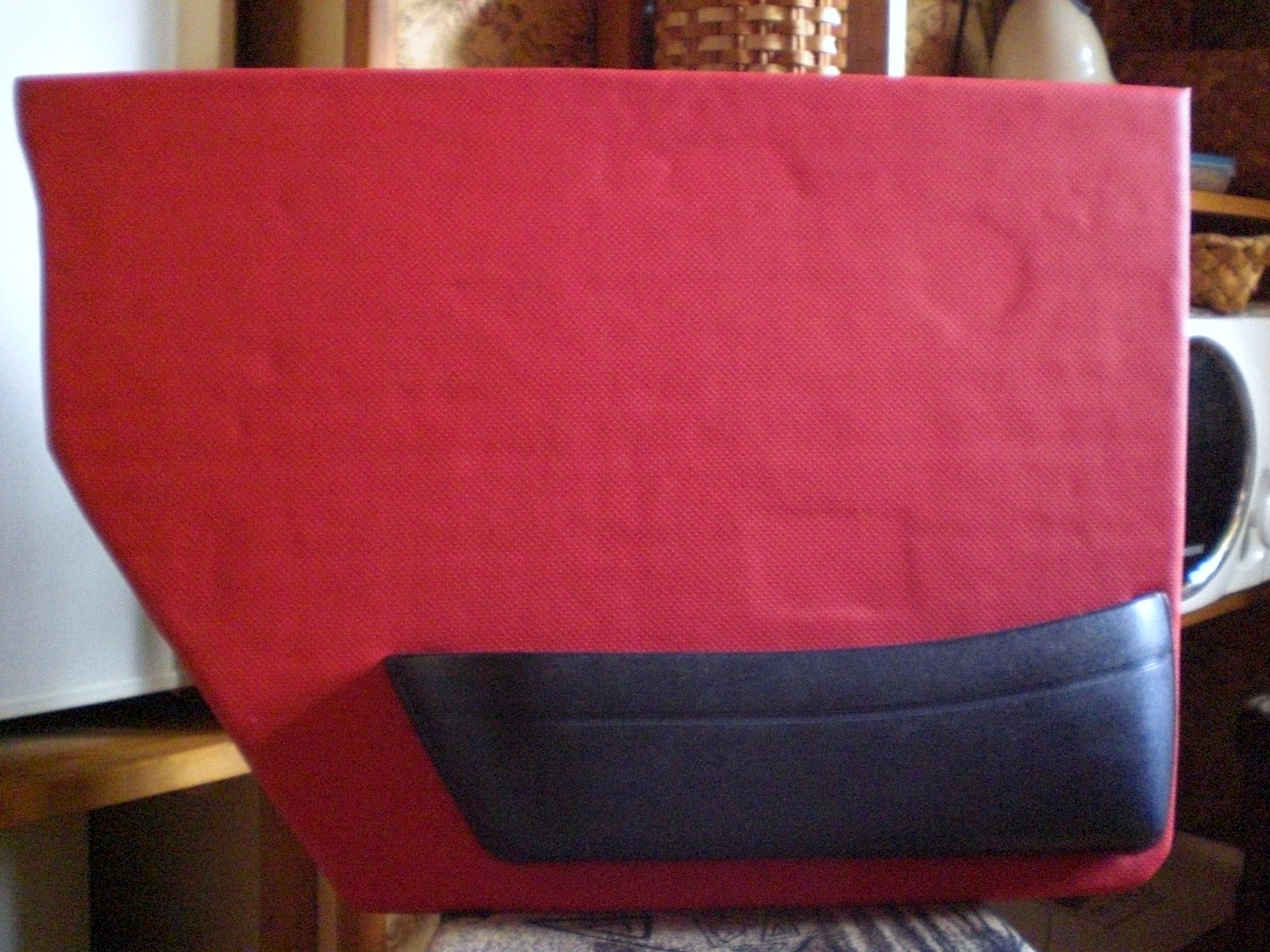Был куплен качественный кожзам красного цвета с перфорацией: