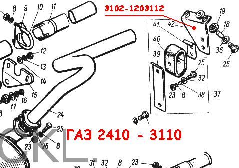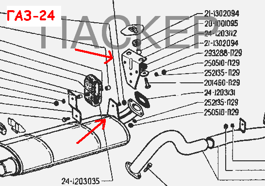 У ГАЗ-24 крепление глушителя к кузову отличается от всех последующих моделей.