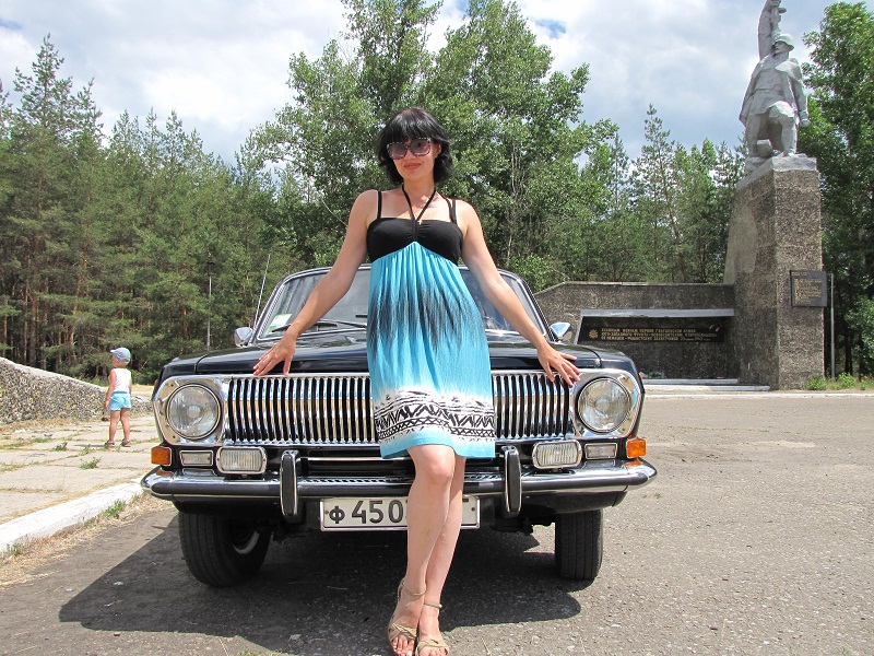 Жена красивая, сразу видно с Волгой любит фотографироваться. Позу правильны занимает. Отличное фото.