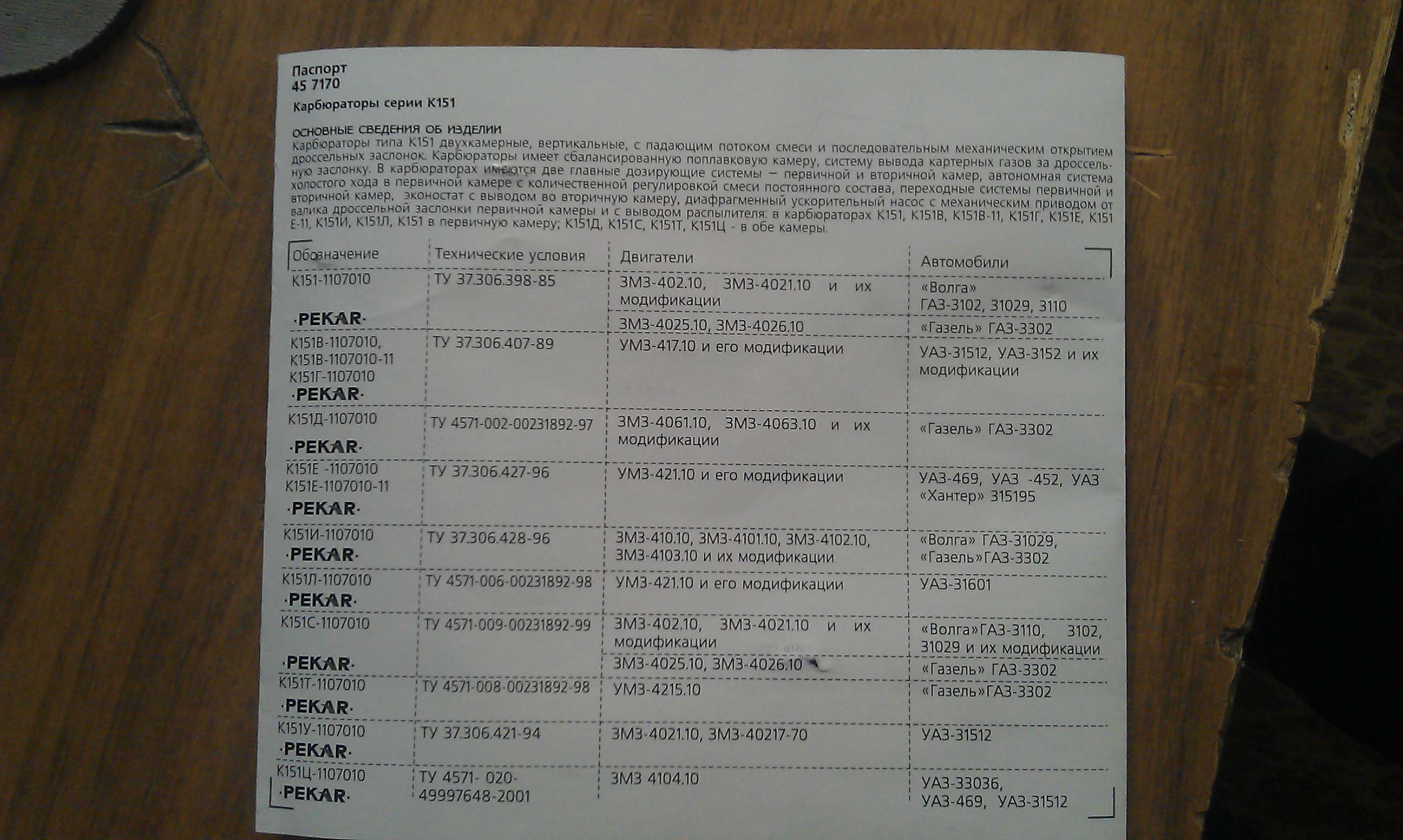 к-151В - ставился на УАЗыTANKER писал(а):есть насколько я знаю <BR> <BR> 151 <BR> 151B <BR> 151C <BR> 151Д <BR> 151И (кажись такой есть или я вру) <BR> <BR> <BR> в общем а кто знает чем они отличаются друг от друга и какой на какой мотор ставицо