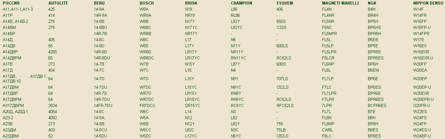 К сожалению, среди иностранных производителей не существует единой шкалы калильных чисел, поэтому при покупке свечей пользуйтесь таблицей взаимозаменяемости свечей.