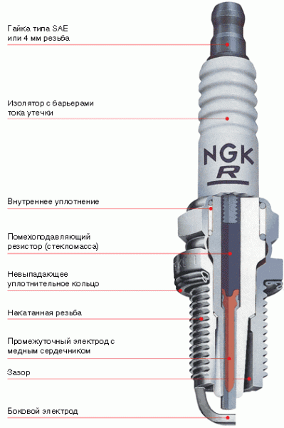 Детали свечи, находящиеся в камере сгорания, подвергаются
