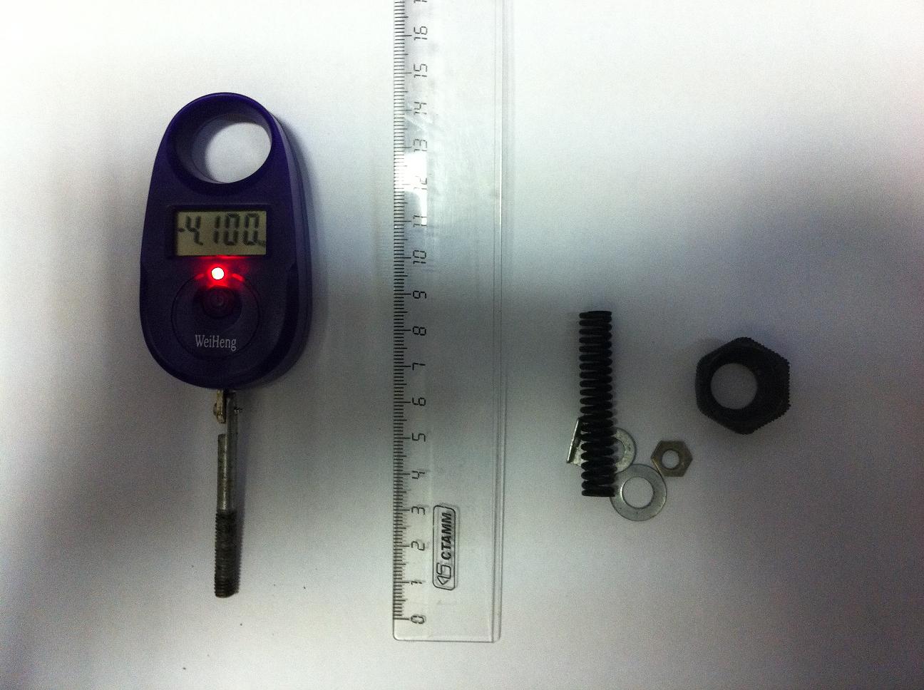 Проверил усилие тарированной пружины маслонасоса. Пружинка оказалась просевшей.. По книге ее усилие должно быть 43,5– 48,5 Н (4,35–4,85 кгс).
