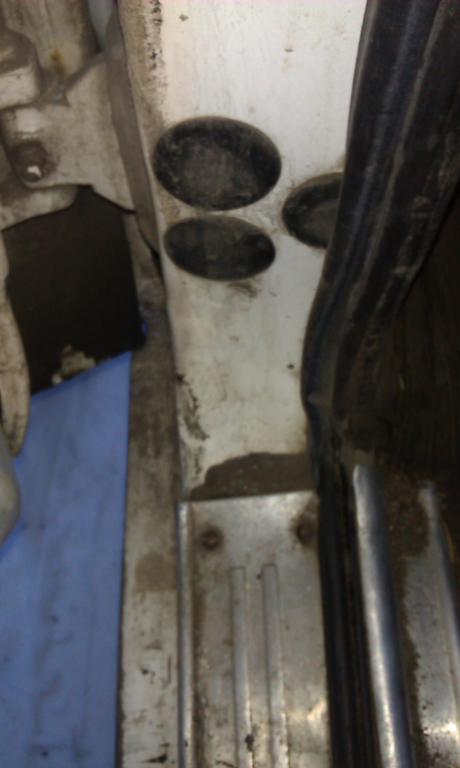 - Левее левой водительской ноги над коробом следы сварки, толь трещину варили толи гниль прятали, вопрос вот в чём это место выше уровня пола и там гнить поидее не должно, тогда что это или от чего????