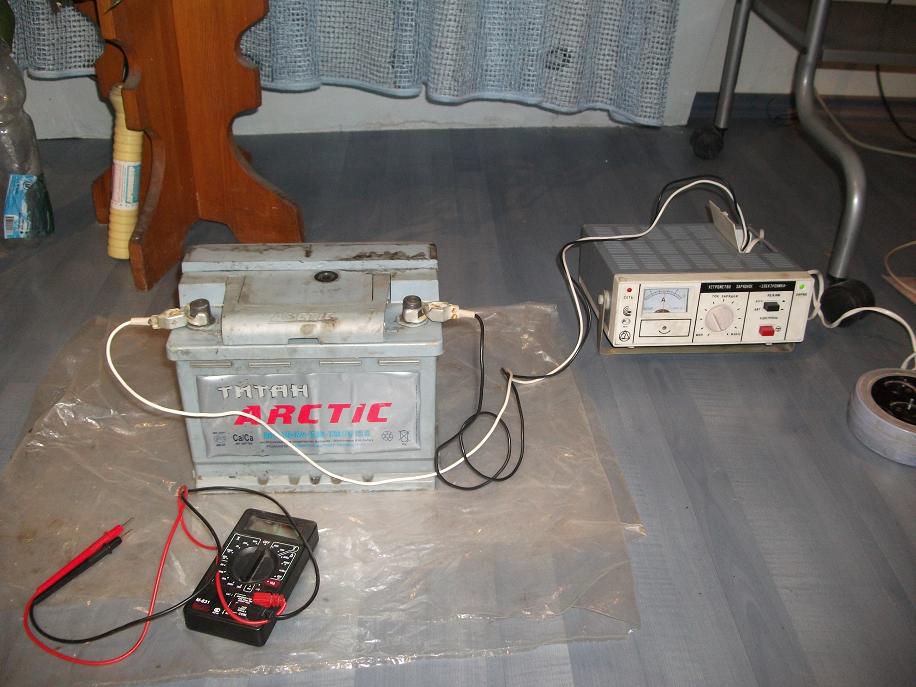 Аккумулятор на 62 ампер-часа. Врубил зарядник на максимум (5 ампер), напряжение при этом на клеммах составило всего 13,5 вольта, значит аккумулятор был сильно посажен. В течении получаса ещё не забулькал... Ну да может оно и к лучшему, значит пластины принимают заряд.