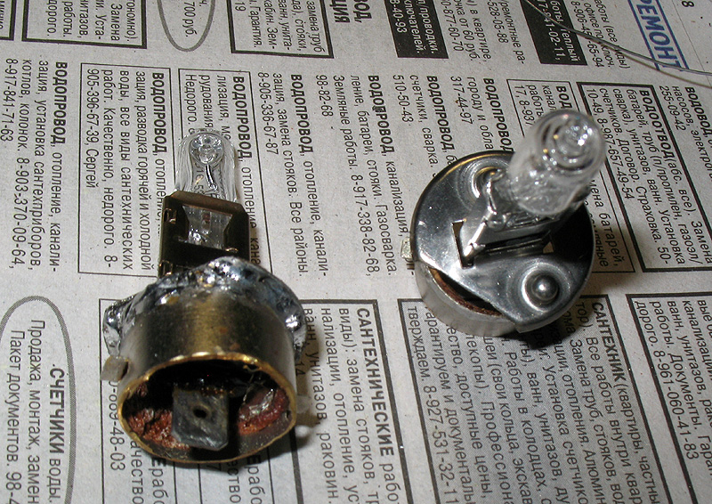 Решил банально-отрезал нижнюю часть цоколя родной лампы,удалил колбу лампы и припаял к нему Н1.